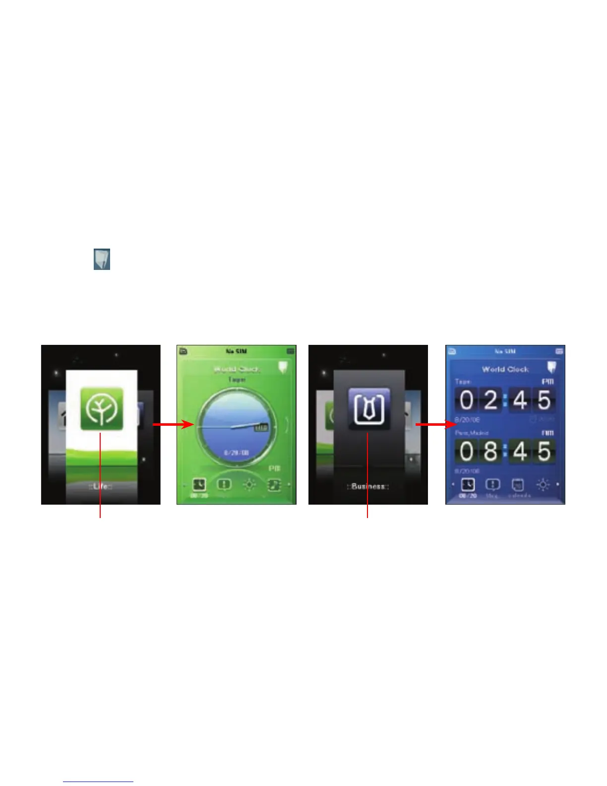 2. To navigate through the Original, Business, and Life themes, push the navigation key leftward or