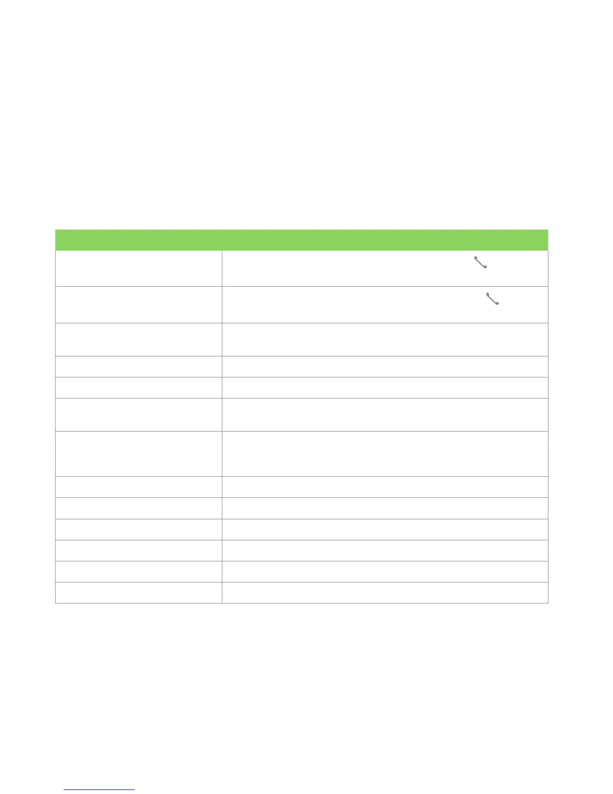 Listed in the table below are the possible menu options for when a call is in progress. Some of these