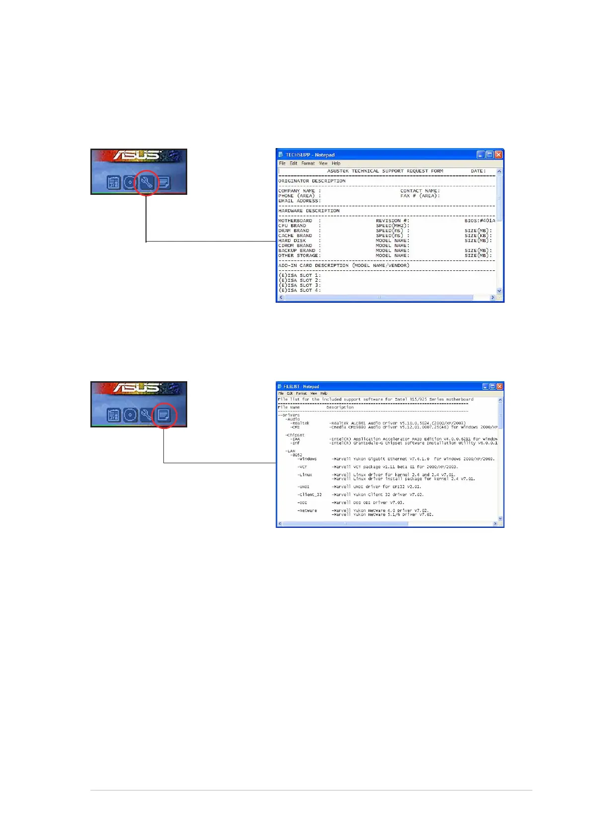 Displays the ASUS Technical Support Request Form that you have to fill out