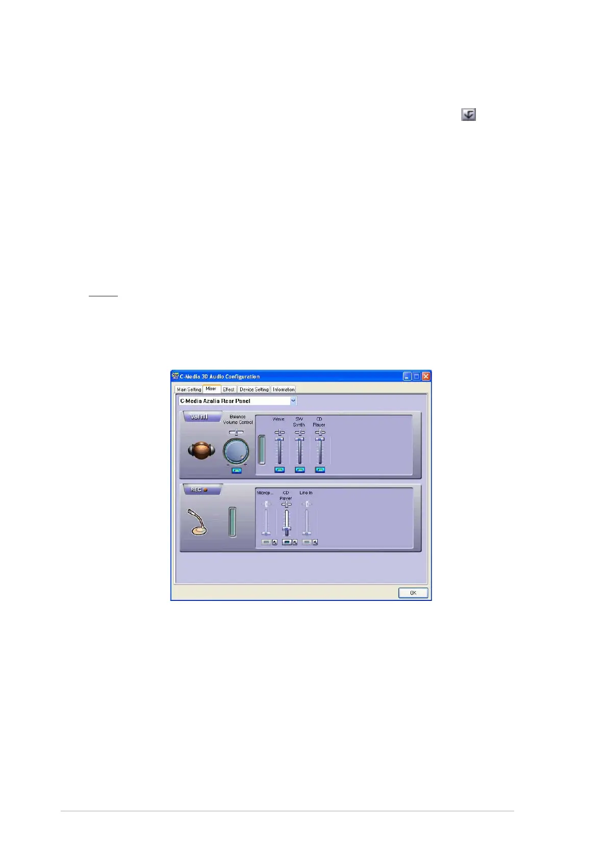 Mixer tab allows you to adjust the audio input and the recording