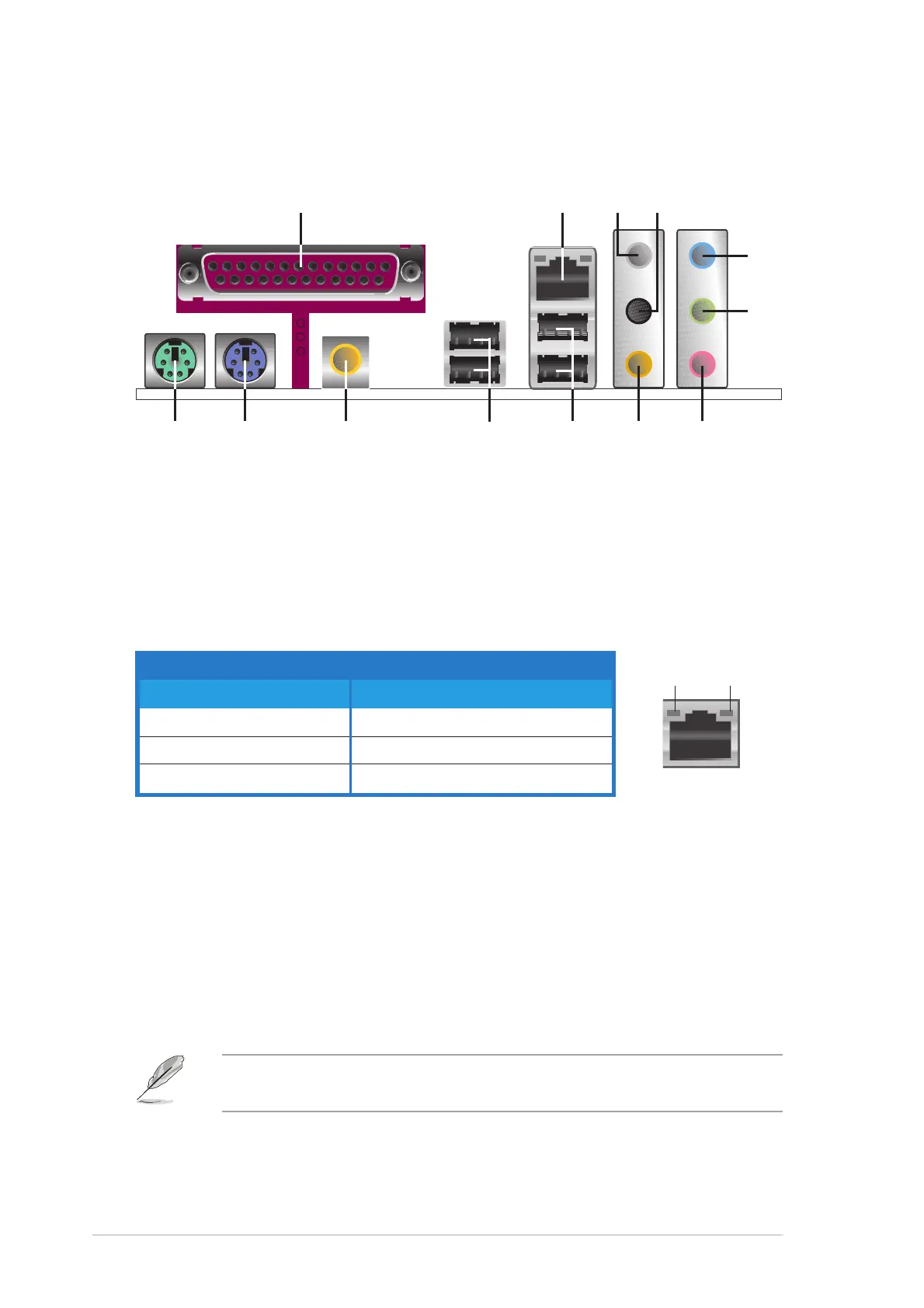 Parallel port. This 25-pin port connects a parallel printer, a scanner,