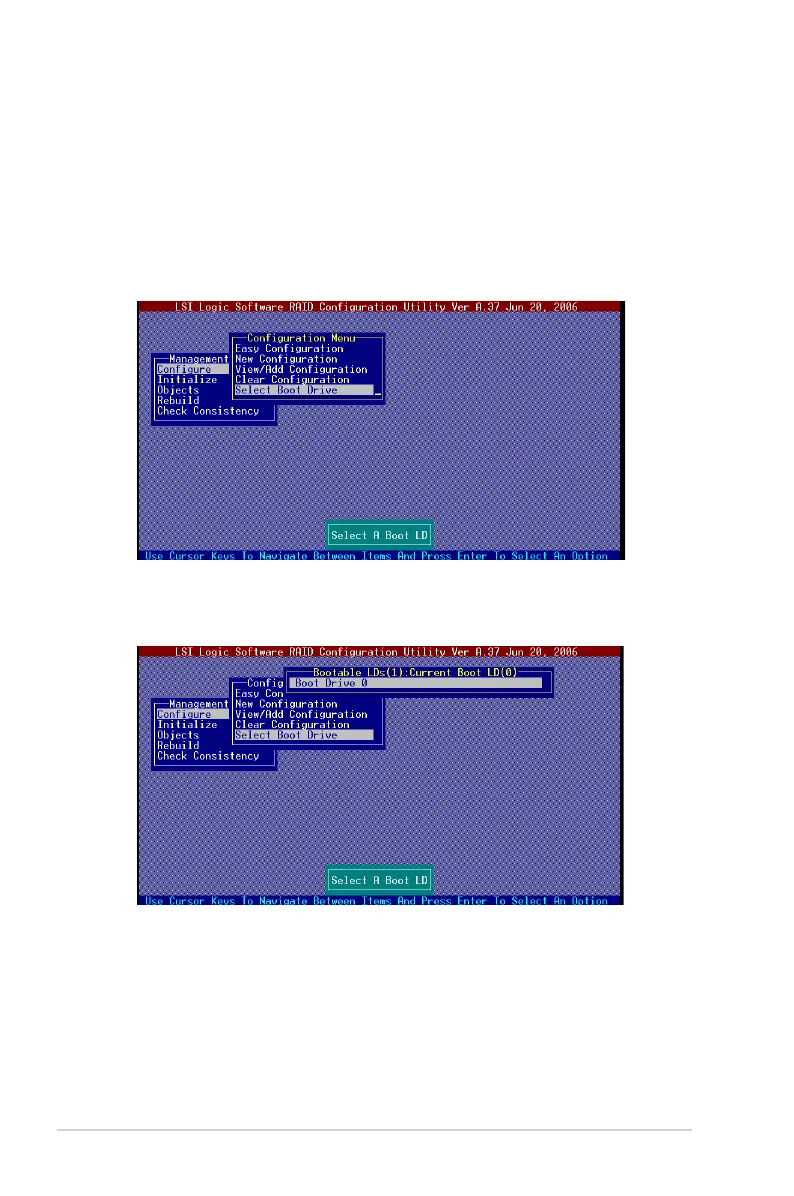 1. From the Management Menu, select Congure > Select Boot Drive, then