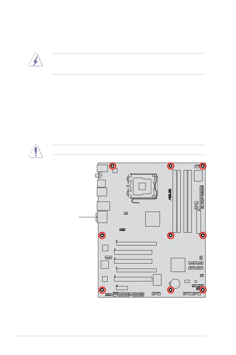 Do not overtighten the screws! Doing so can damage the motherboard.