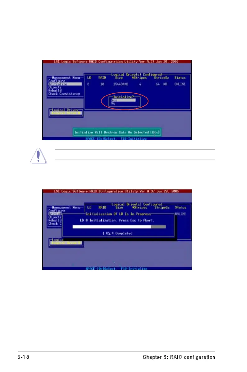 Initializing a logical drive(s) erases all data on the drive.