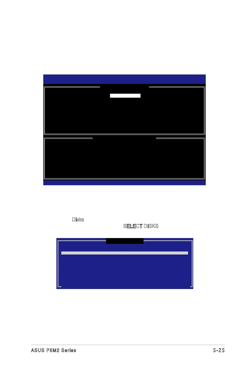want to include in the RAID set. The SELECT DISKS screen appears.