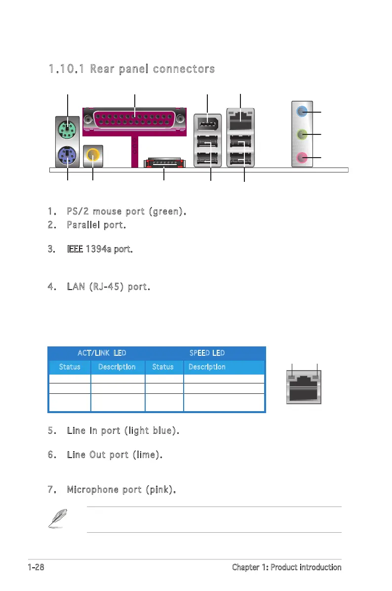 1. PS/2 mouse port (green). This port is for a PS/2 mouse.