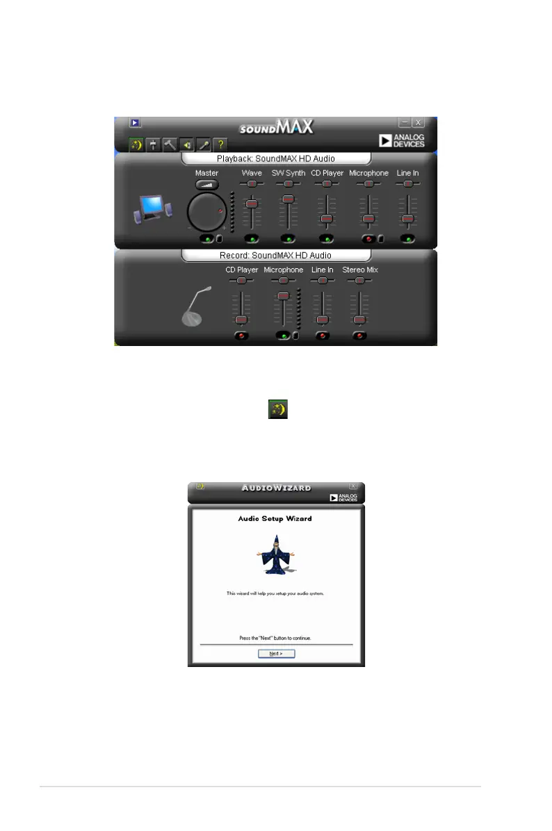 SoundMAX 控制面板下,點選 圖示,您可以很容易地進行音效設