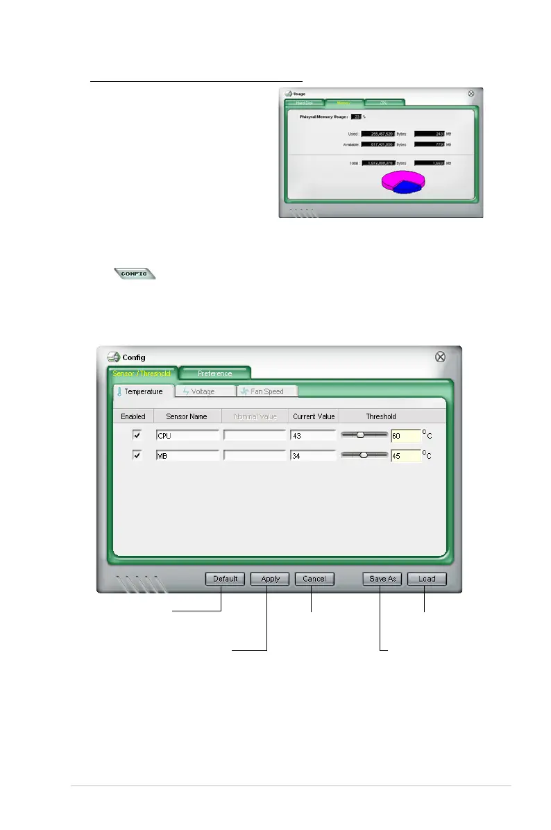 Config(設定)視窗中有兩欄:Sensor/Threshold Preference。第一