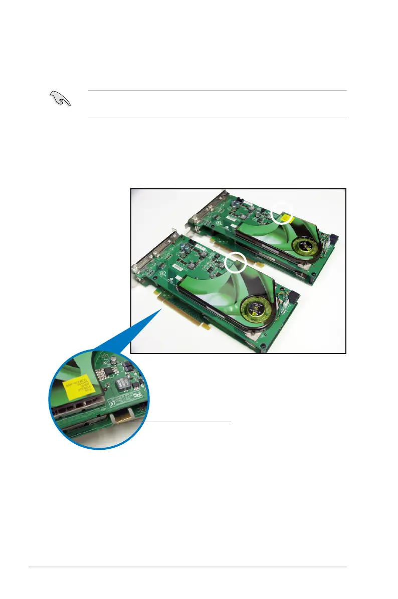 支援 SLI™ 技術的 PCI Express 介面顯示卡在顯示卡上方必須具備如下
