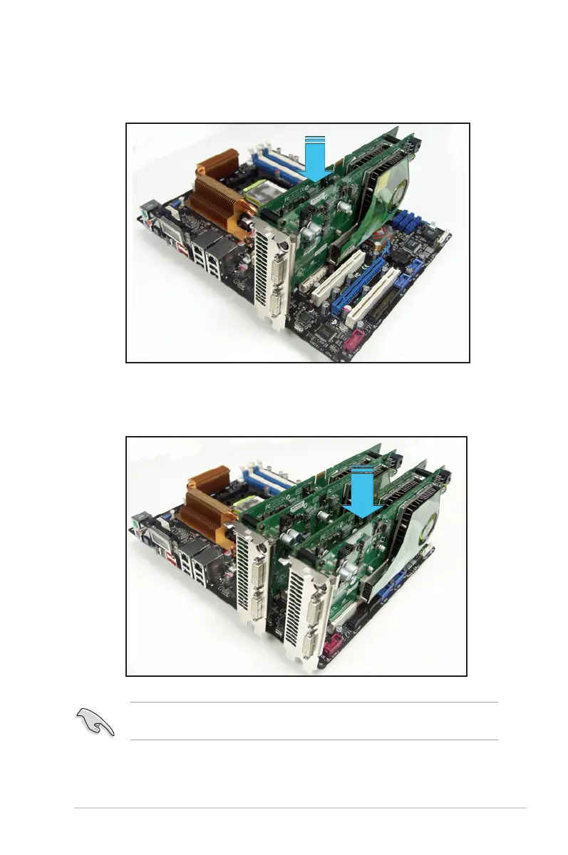 4. Insert the second graphics card into the other slot (PCIEX16_3). Make sure