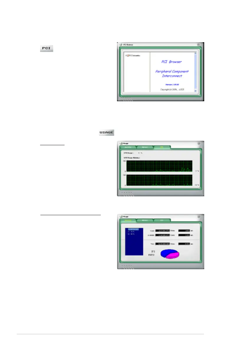 The Usage browser displays real-time information on the CPU, hard disk drive