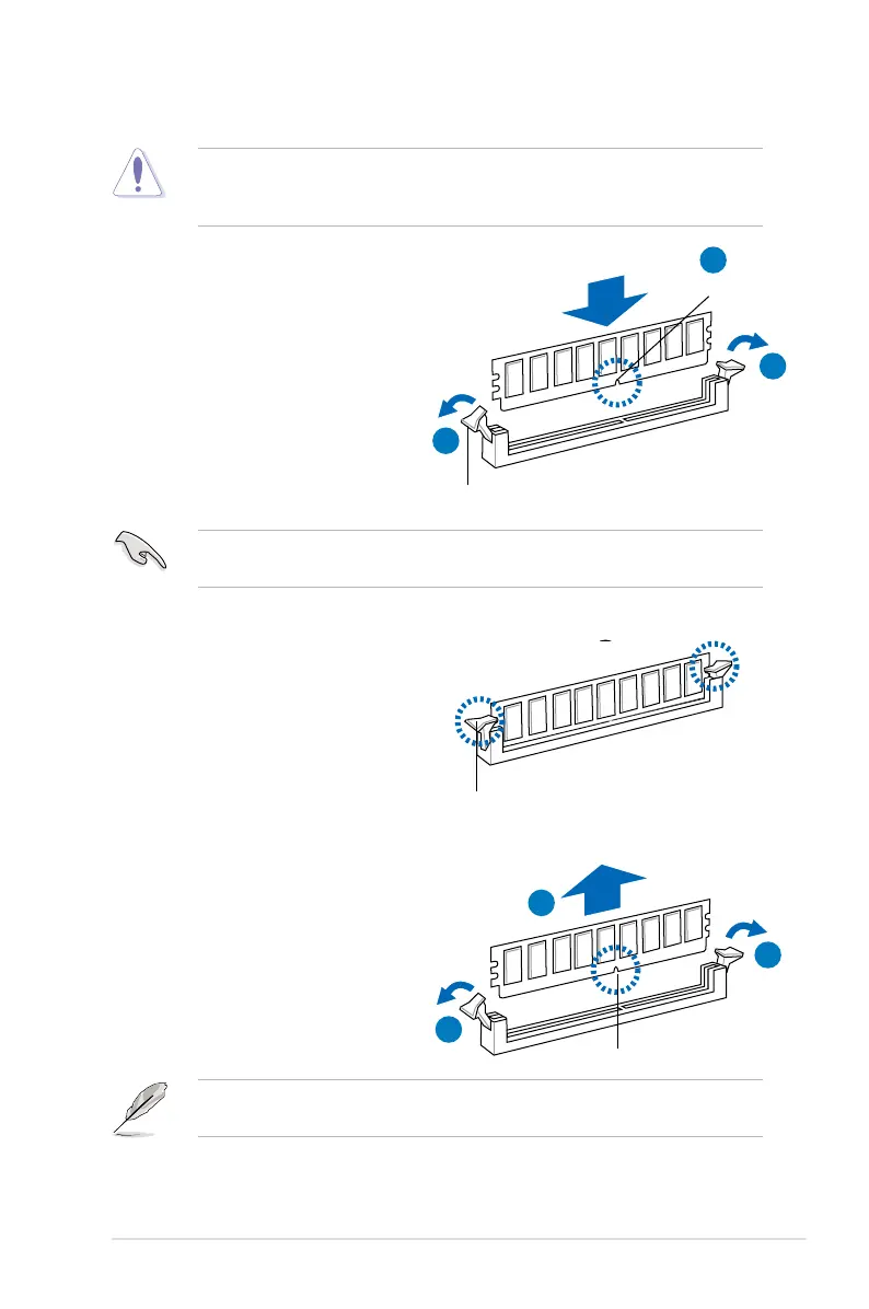 Support the DIMM lightly with your ngers when pressing the retaining clips.