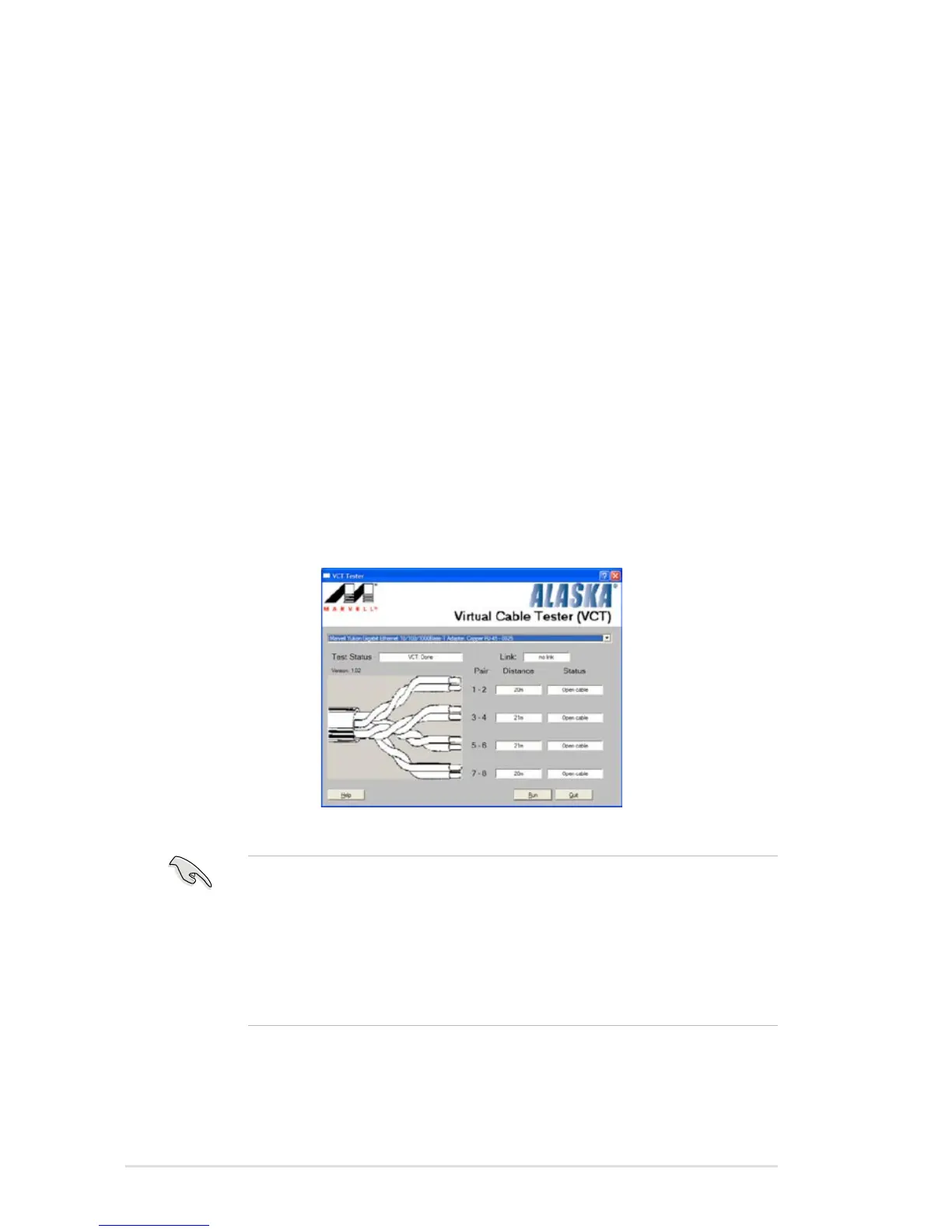 • The VCT utility only tests Ethernet cables connected to Gigabit LAN port(s).