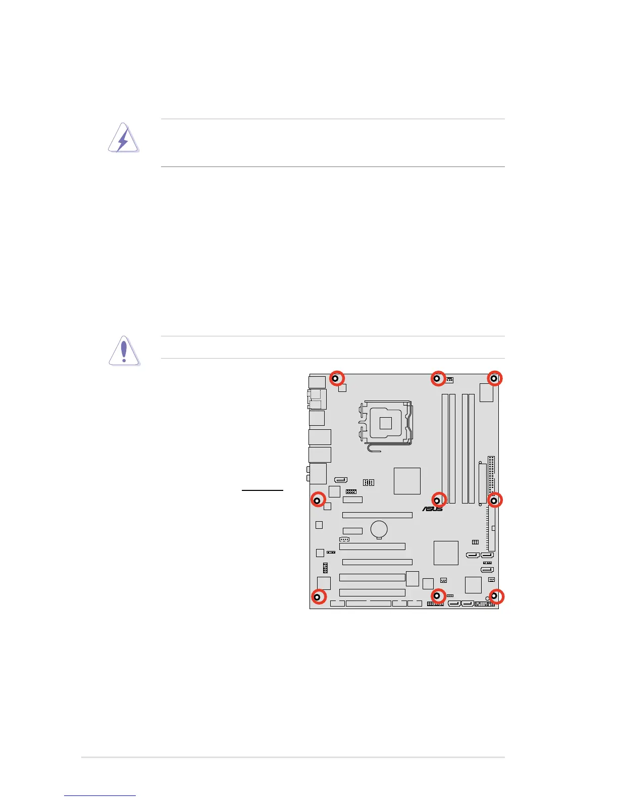 Do not overtighten the screws! Doing so can damage the motherboard.