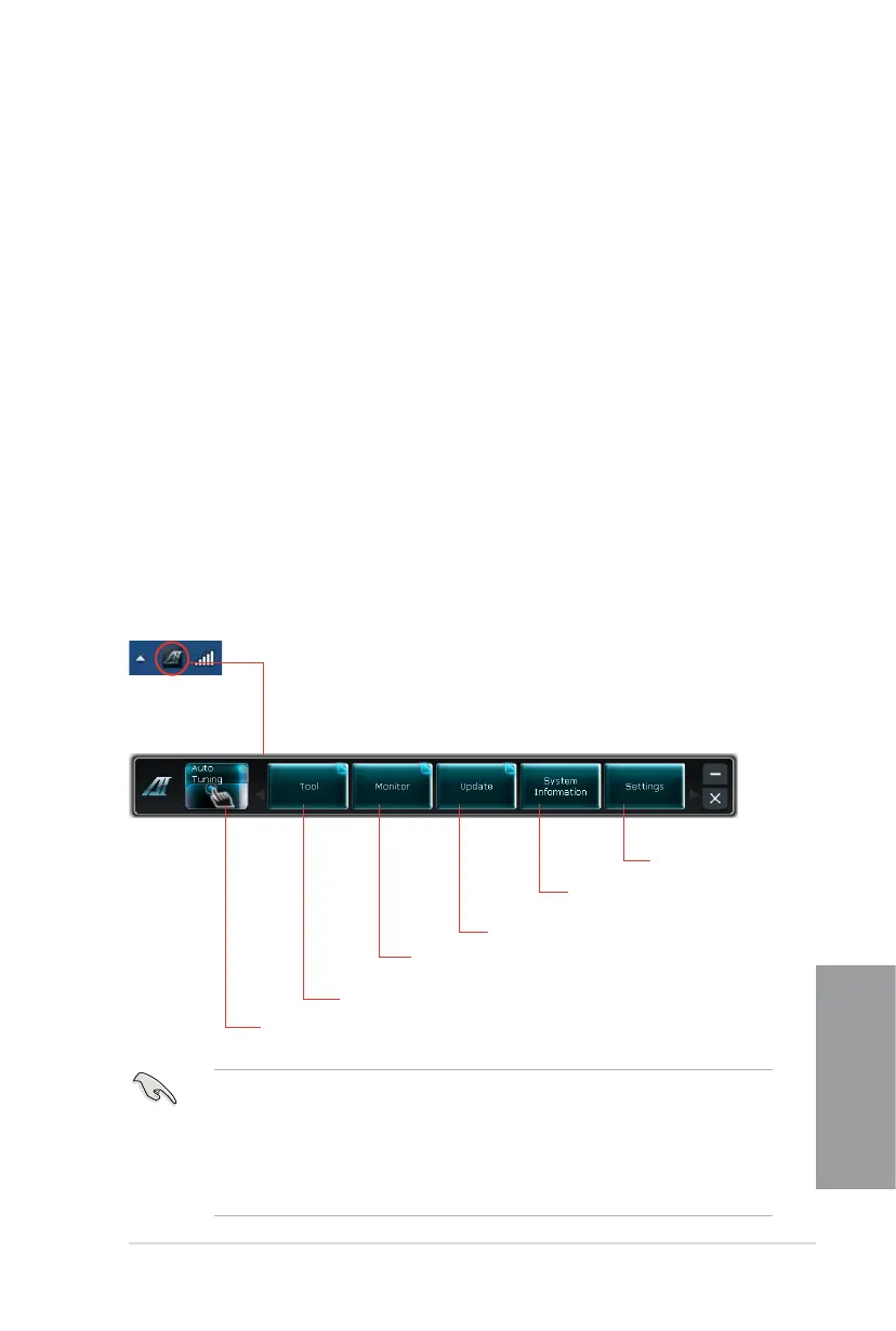 BIOS, to display the system information, and to customize the settings of AI Suite II.