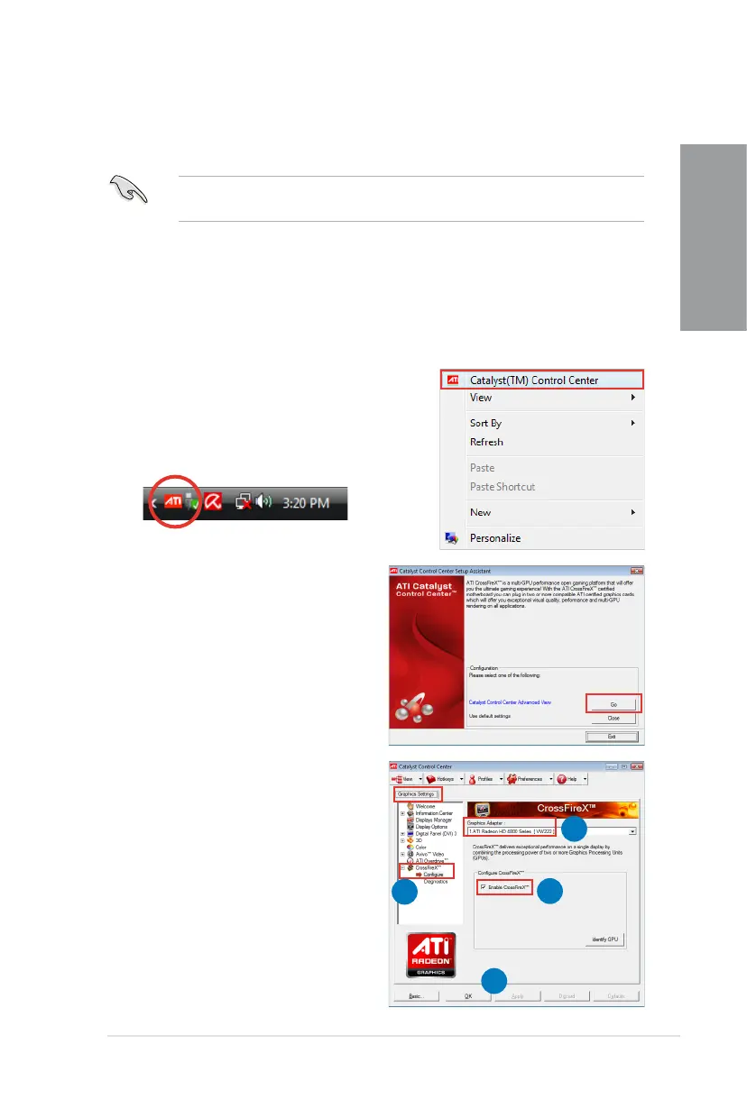After installing your graphics cards and the device drivers, enable the CrossFireX™ feature