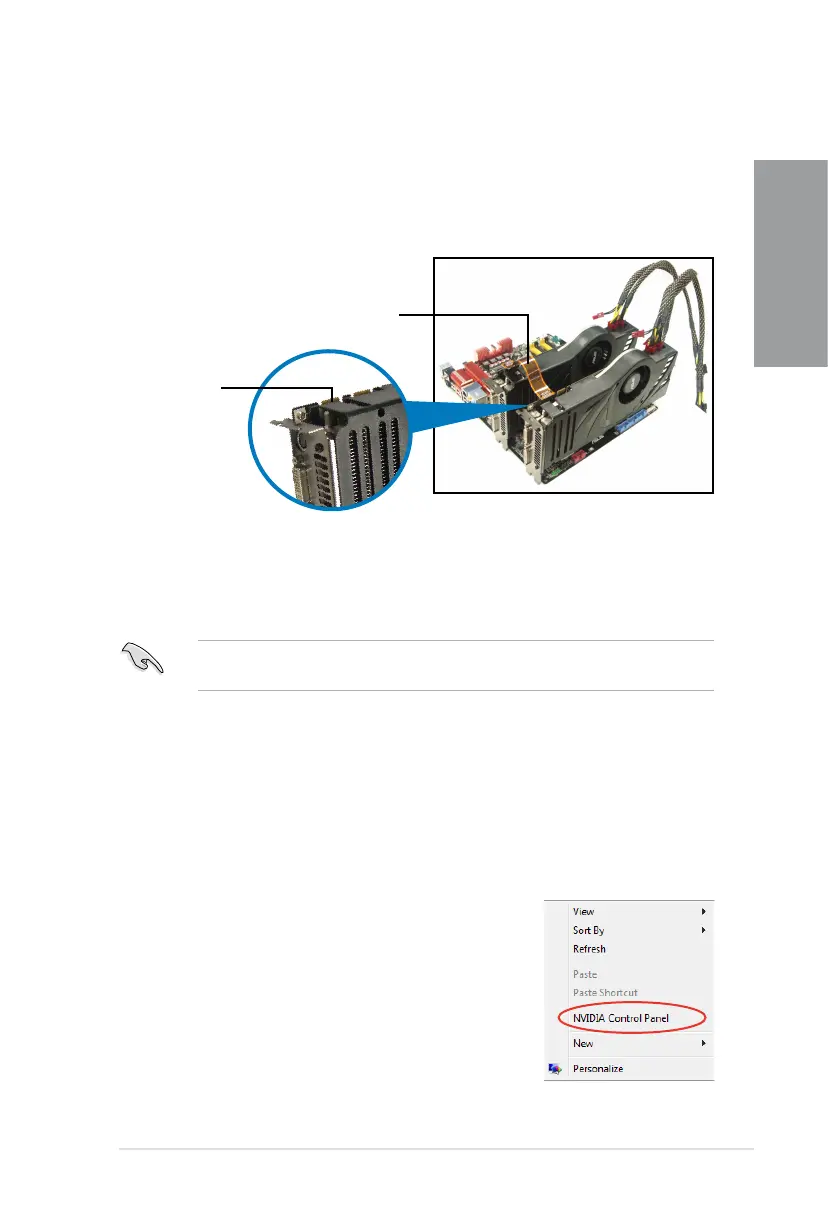 4. Align and rmly insert the SLI bridge connector to the goldngers on each graphics