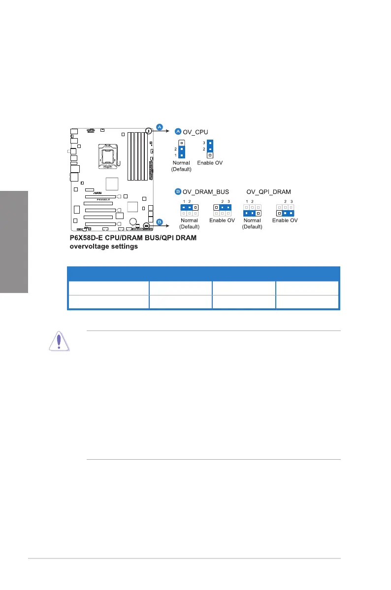 • Before you change the jumper settings for extra-high overvoltage ability, use the BIOS