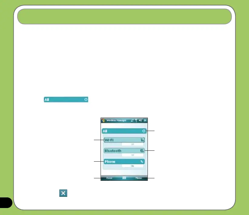 The Wireless Manager allows you to turn the power off or on to your wireless connections in a