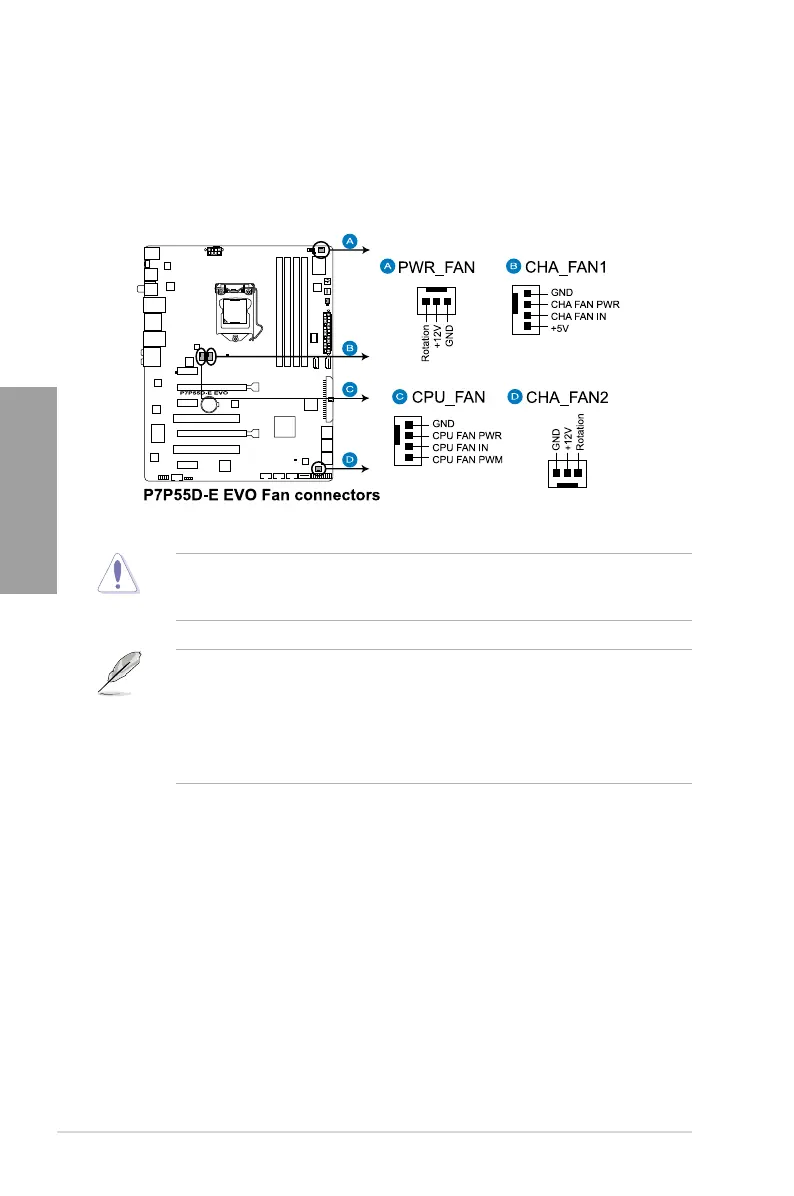 • Only the CPU_FAN, CHA_FAN1 and CHA_FAN2 connectors support the ASUS Fan