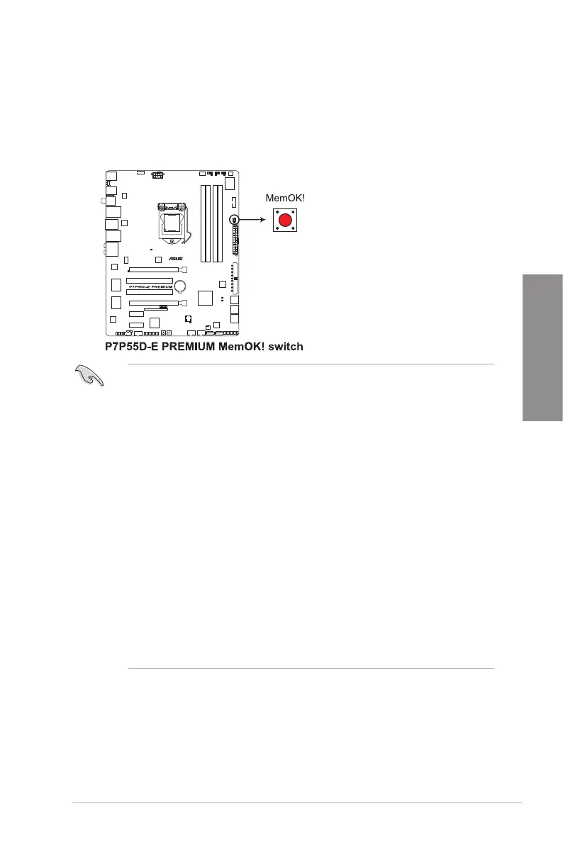 • If your system fail to boot due to BIOS overclocking, press the MemOK! switch to boot