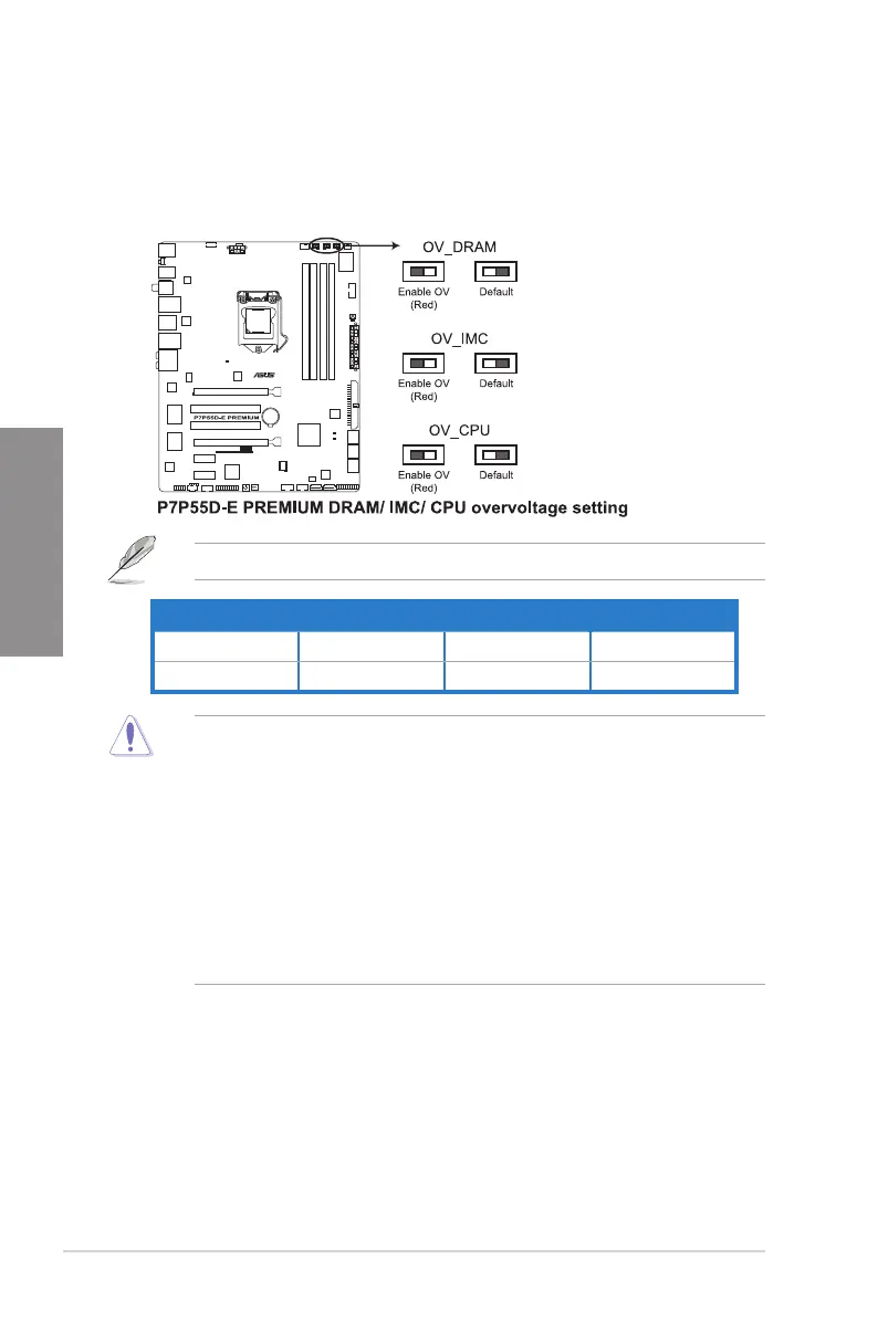 • Before you change the switch settings for extra-high overvoltage ability, use the BIOS