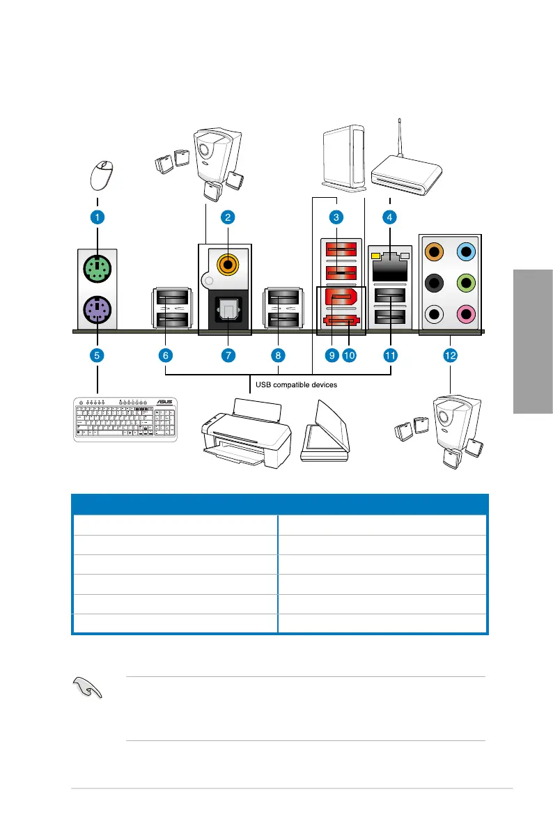 1. PS/2 mouse port (green) 7. Optical S/PDIF Out port