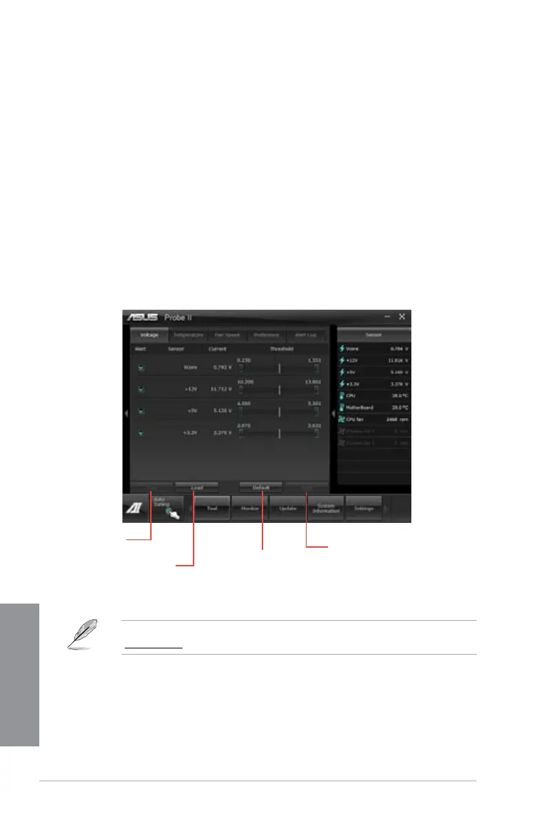 Click the Voltage/Temperature/Fan Speed tabs to activate the sensors or to adjust the