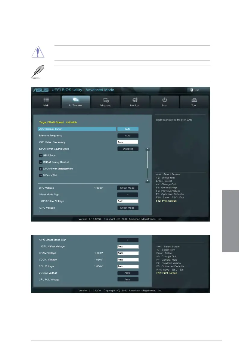 Be cautious when changing the settings of the Ai Tweaker menu items. Incorrect eld