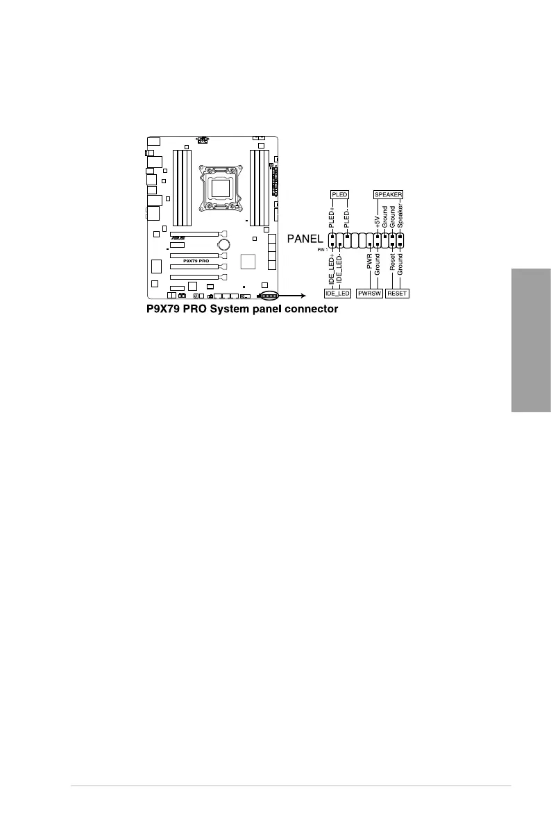 This 2-pin connector is for the system power LED. Connect the chassis power LED