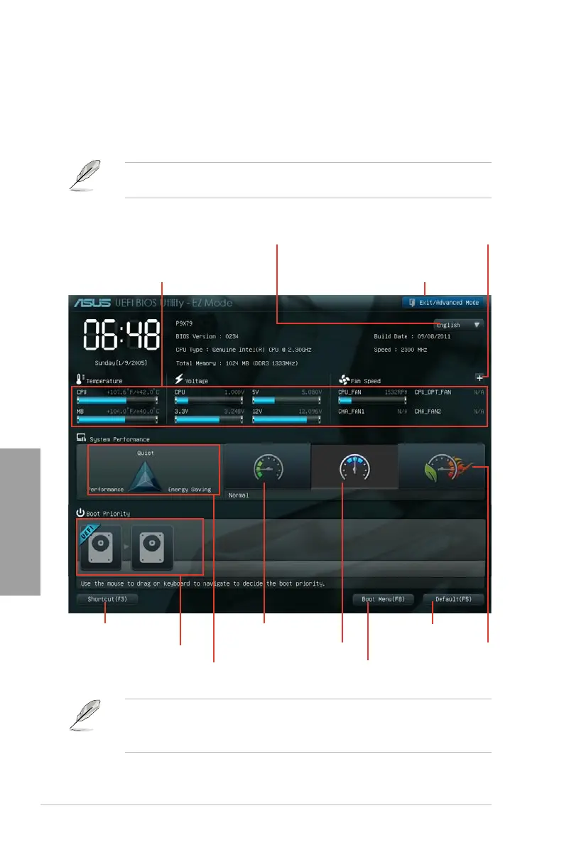 By default, the EZ Mode screen appears when you enter the BIOS setup program. The EZ