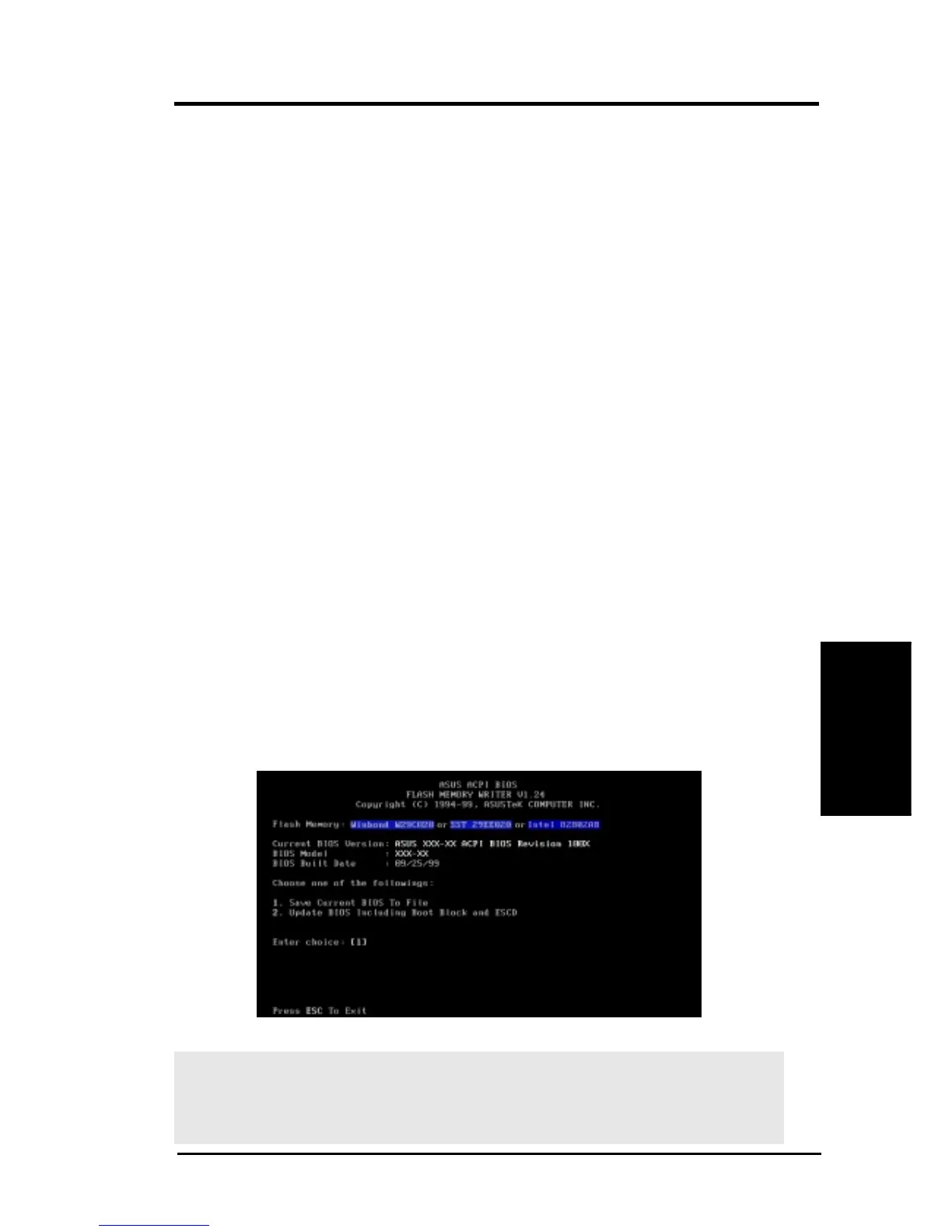 Flash Memory Writer utility that updates the BIOS by uploading a new