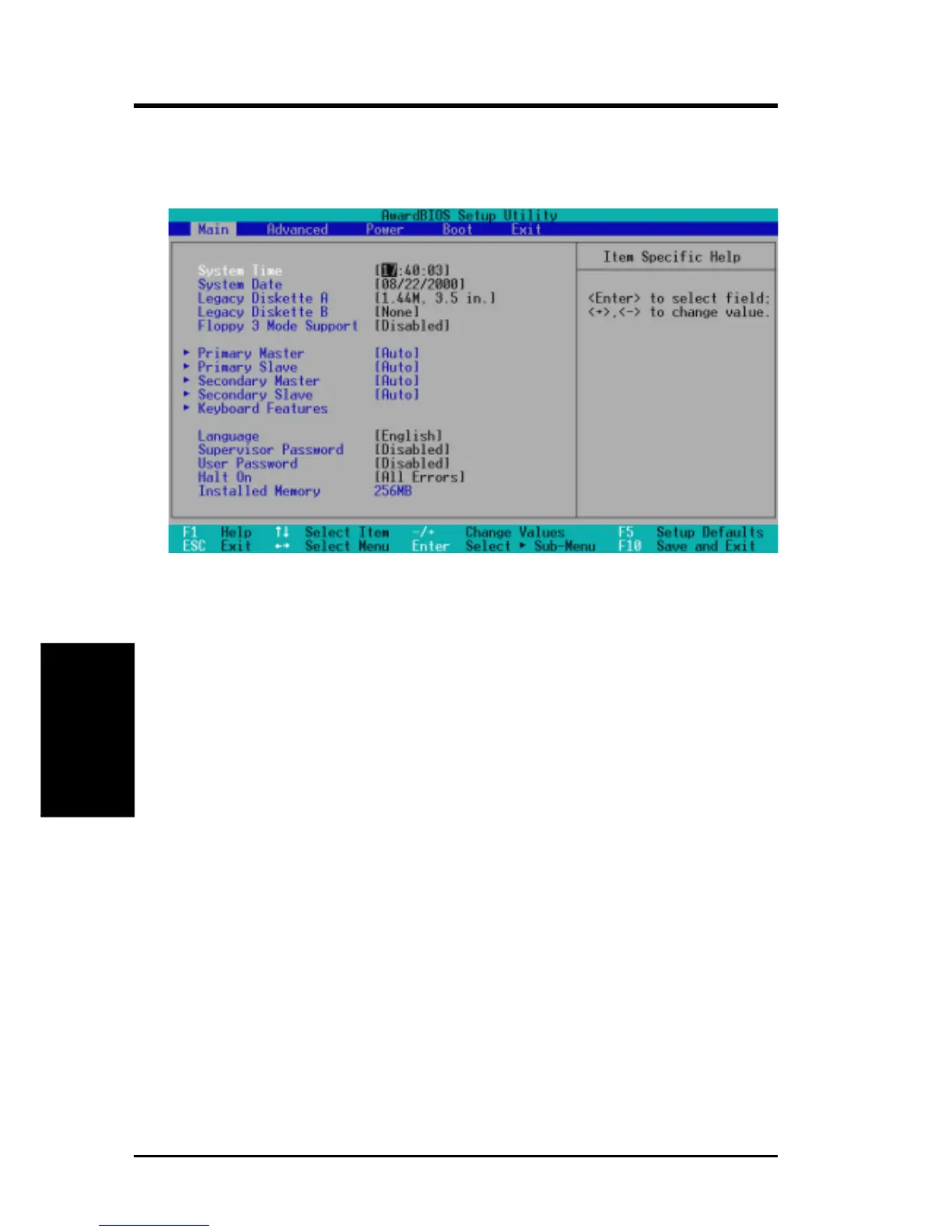 When the Setup program is accessed, the following screen appears: