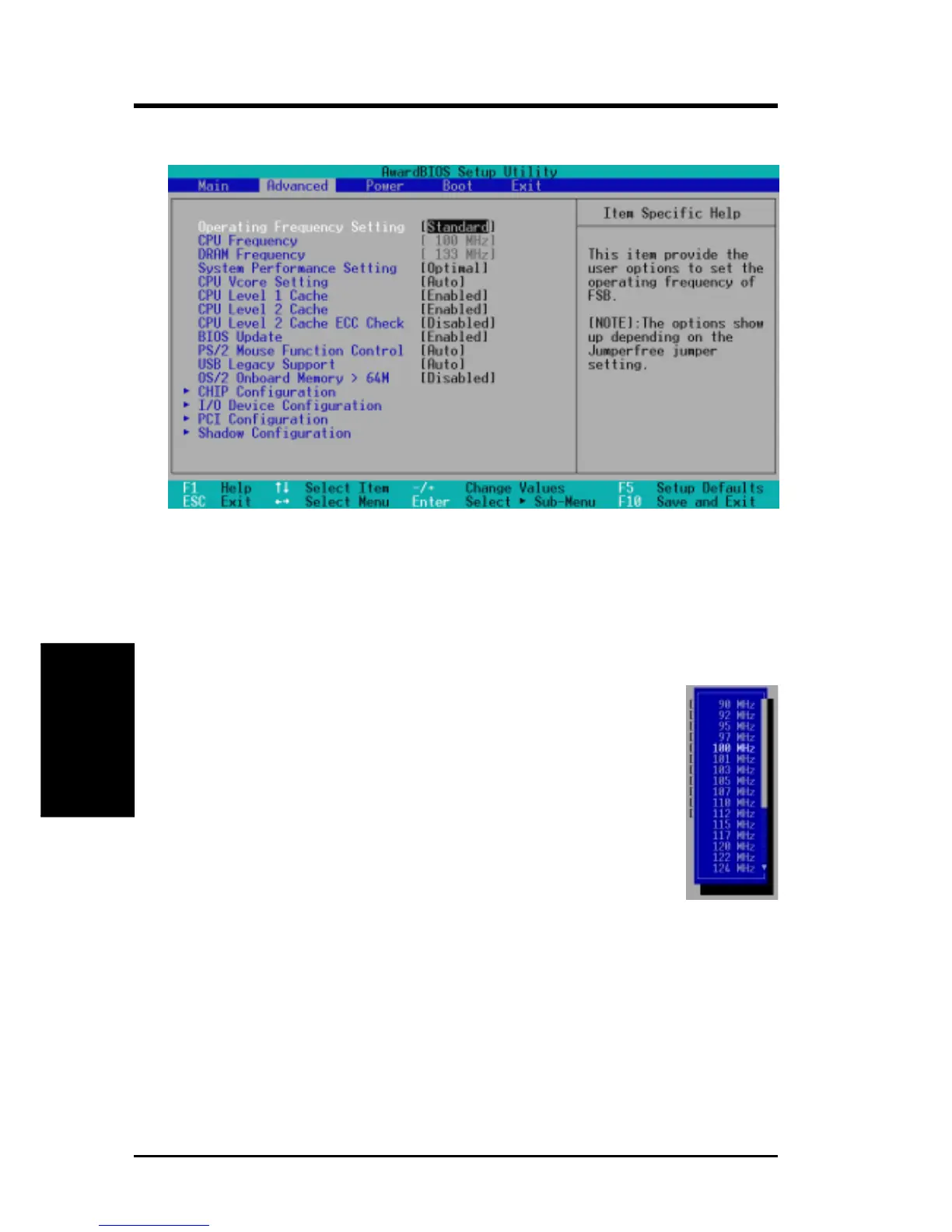 is selected, CPU (external) Frequency will be fixed at 100MHz. Configu-