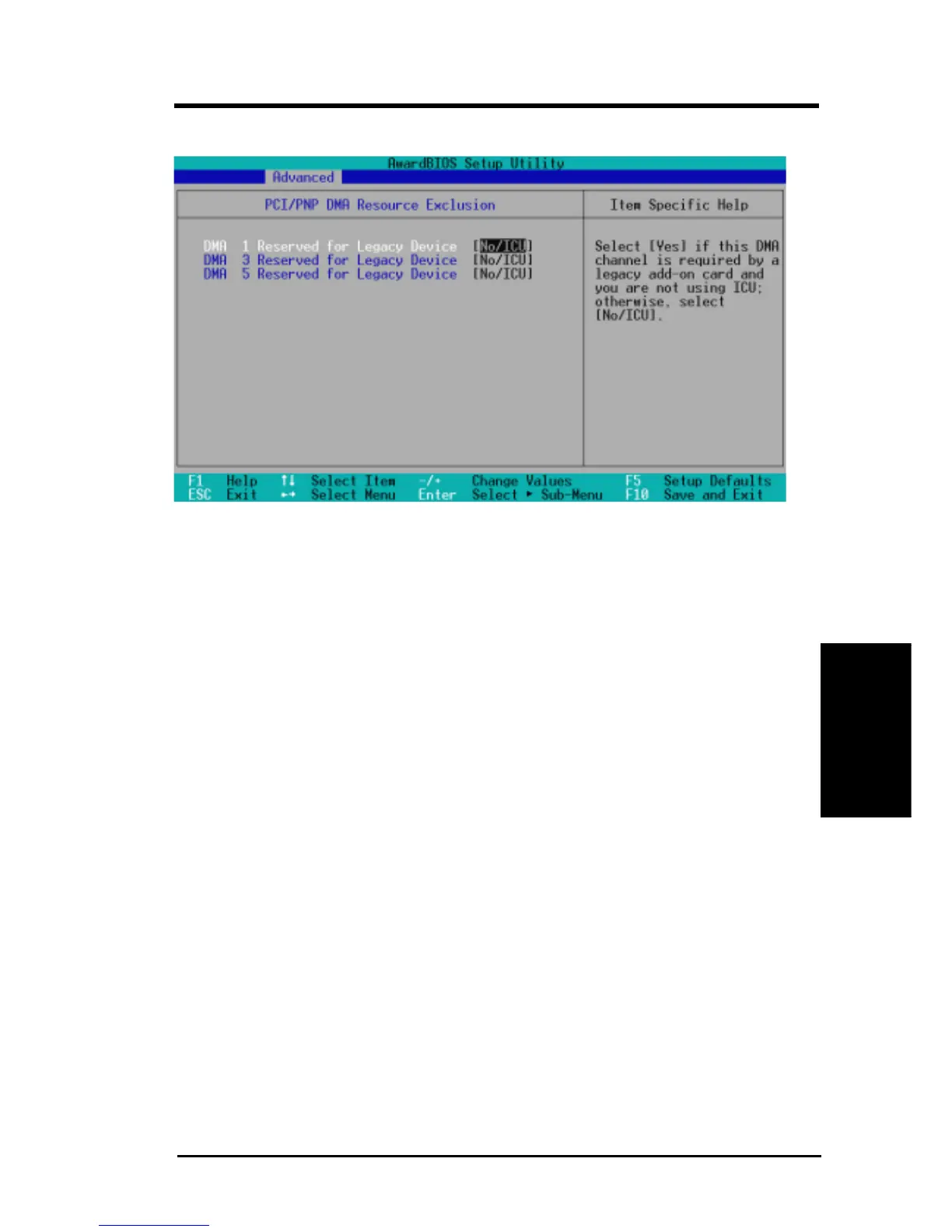 DMA x Reserved for Legacy Device [No/ICU]