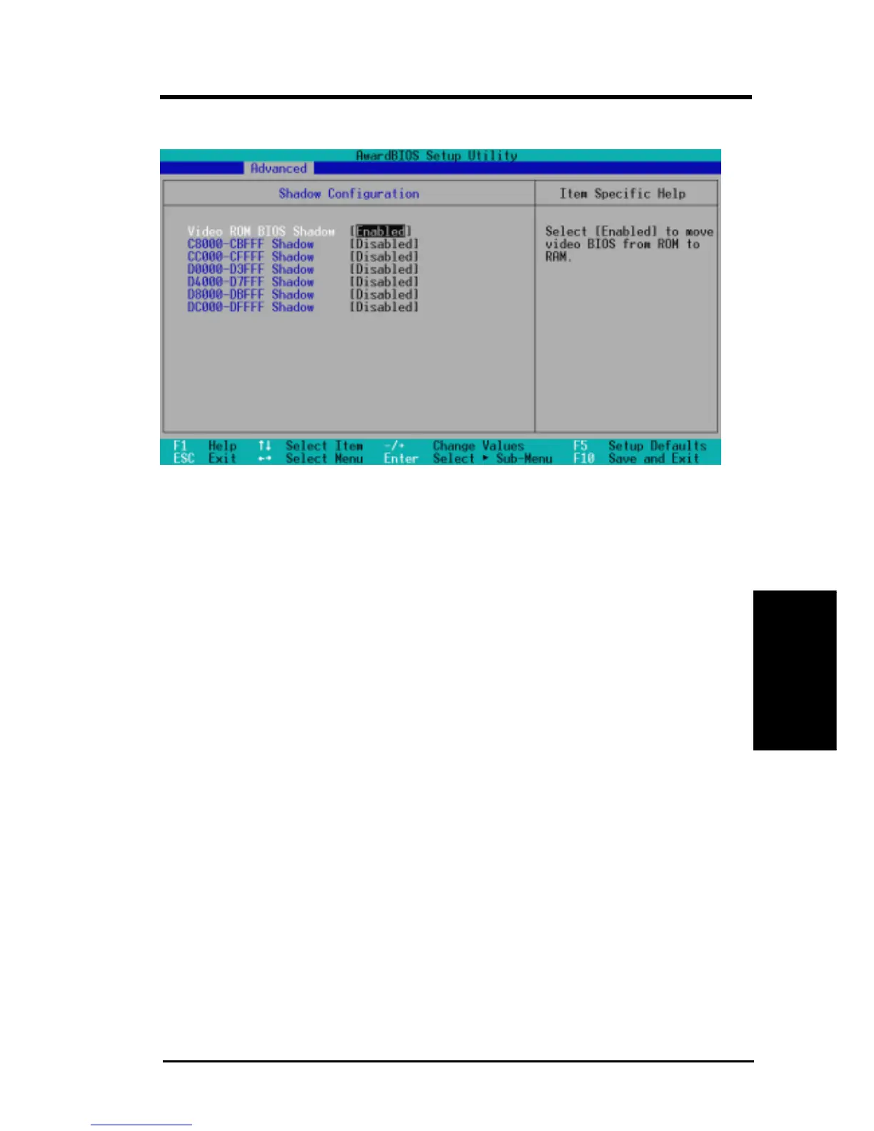 which addresses the ROMs use to shadow them specifically. Shadowing a