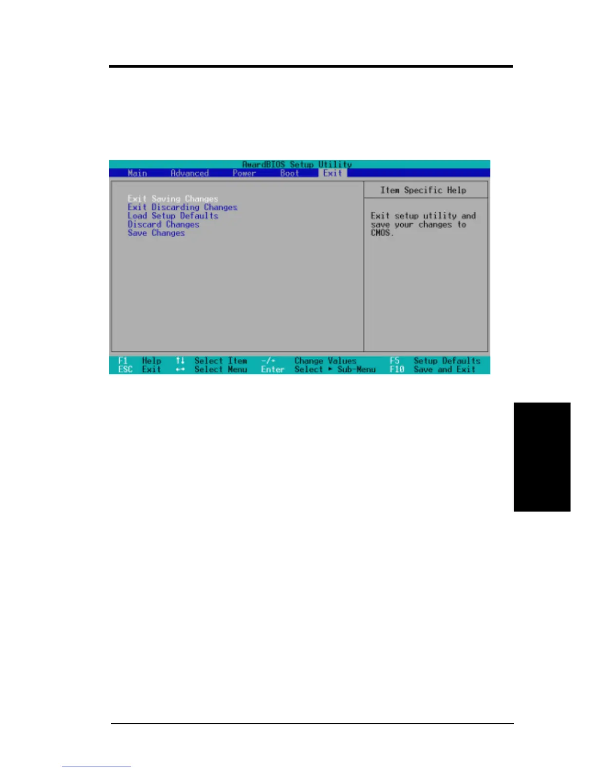 NOTE: Pressing <Esc> does not exit this menu. You must select one of the