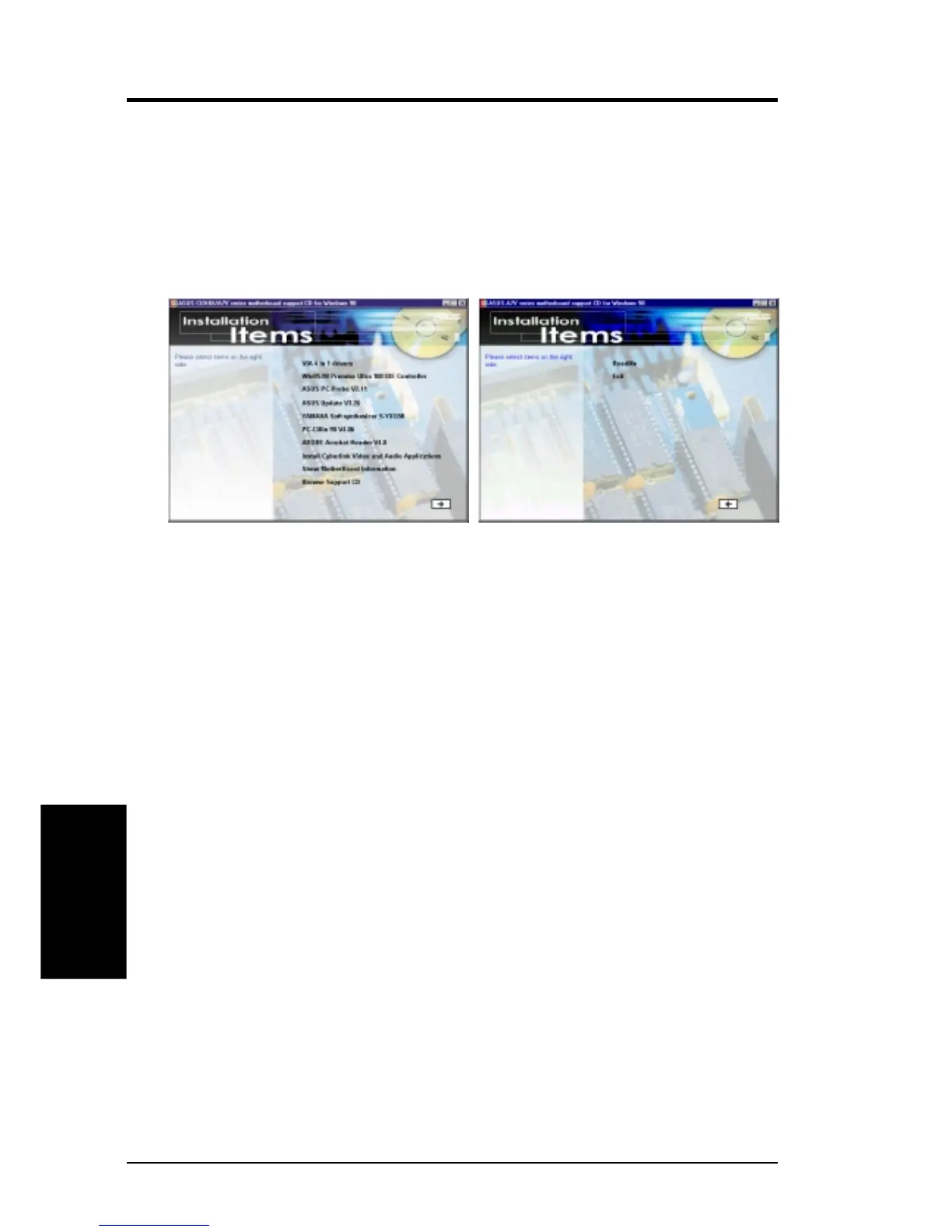 • Install ASUS PC Probe Vx.xx: Installs a smart utility to monitor your computer’s