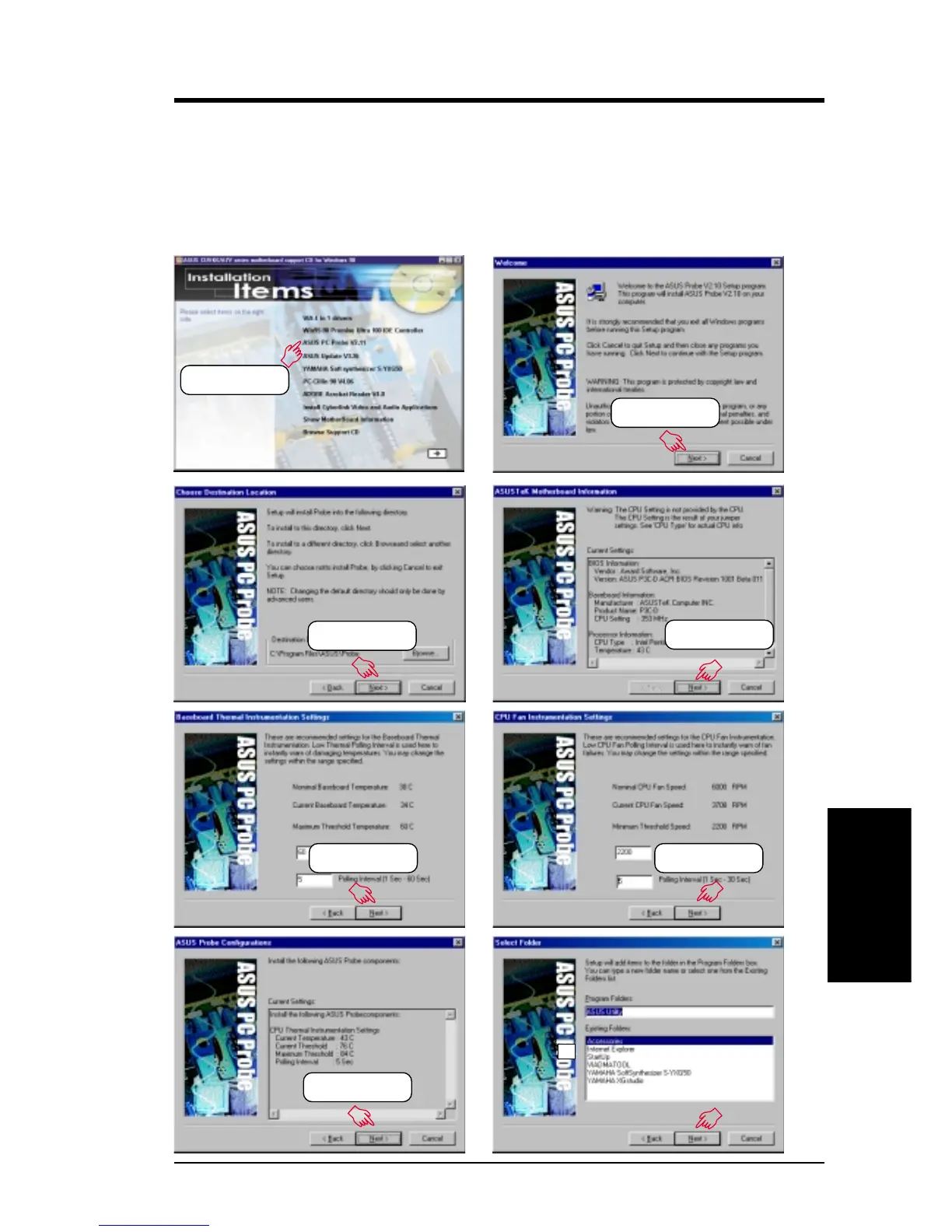 NOTE: ASUS PC Probe will not run if another hardware monitoring utility is in-