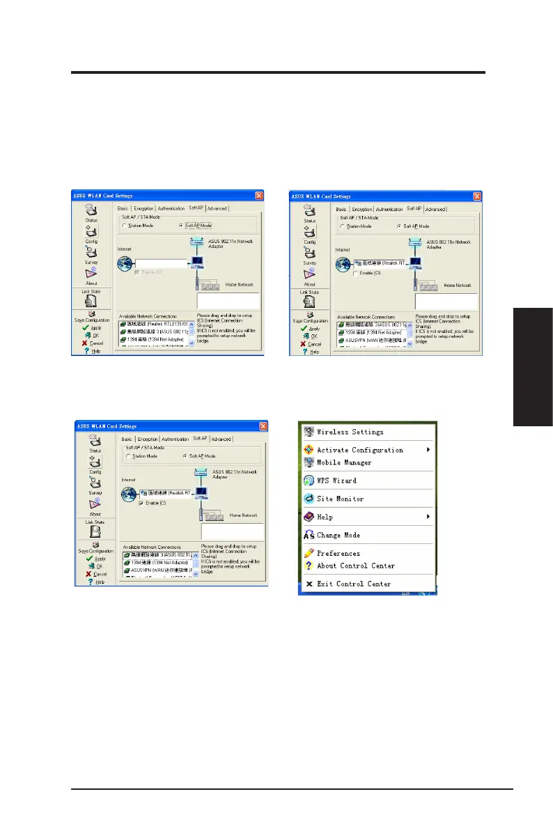 1. Select Soft AP Mode 2. Drag and drop a wired network connec-