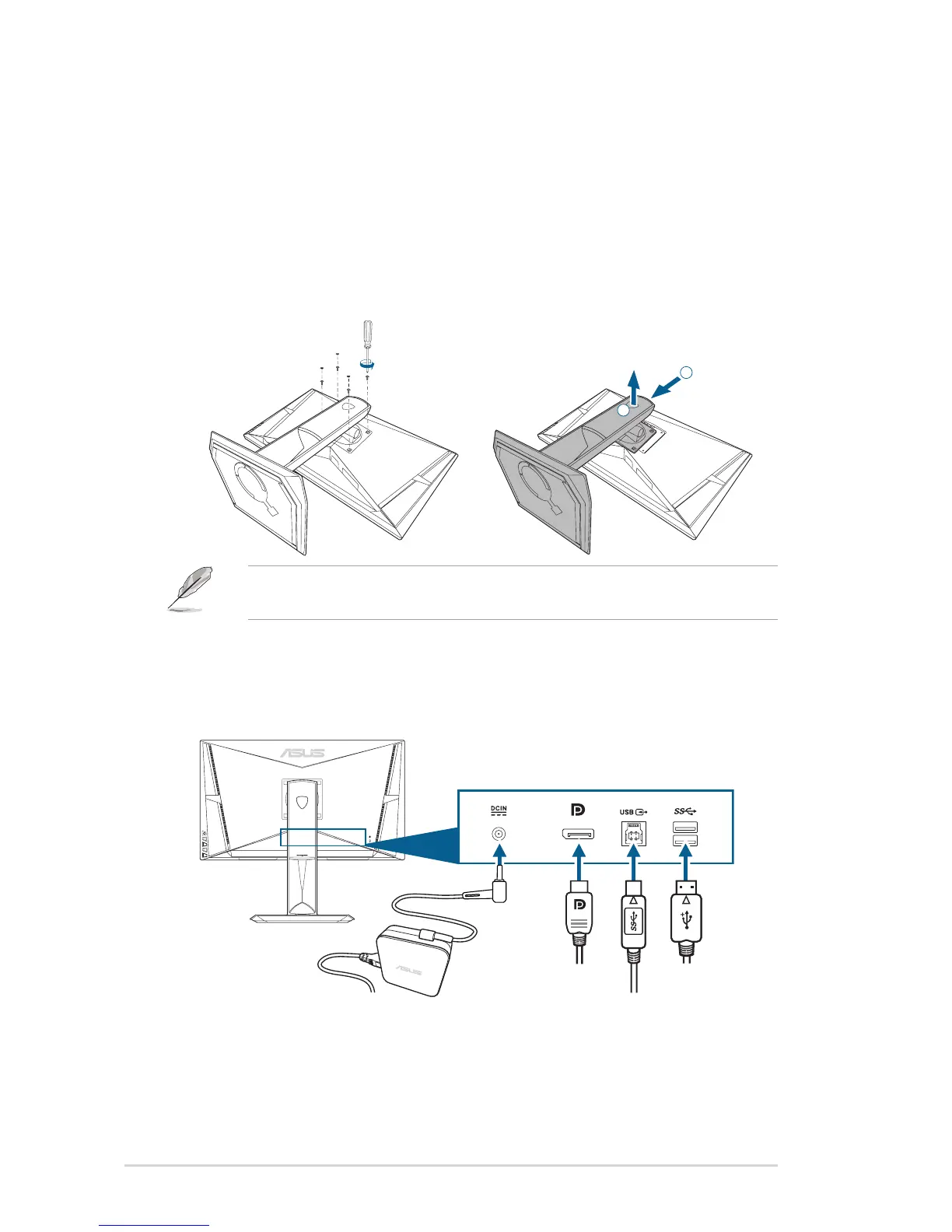 2. Loosen the four screws on the back of the monitor and remove the arm/base.