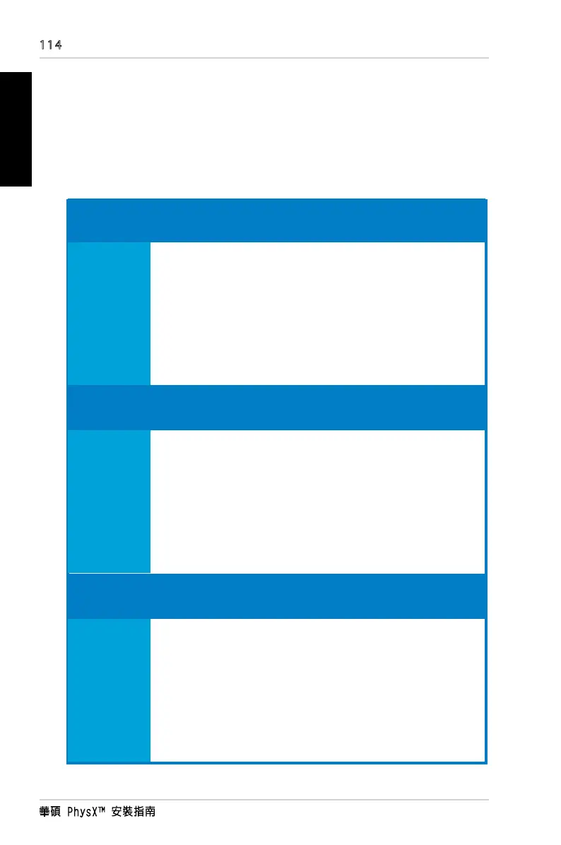 Asus PhysX P1 - 3 問題解決; 問題及解決方法表格