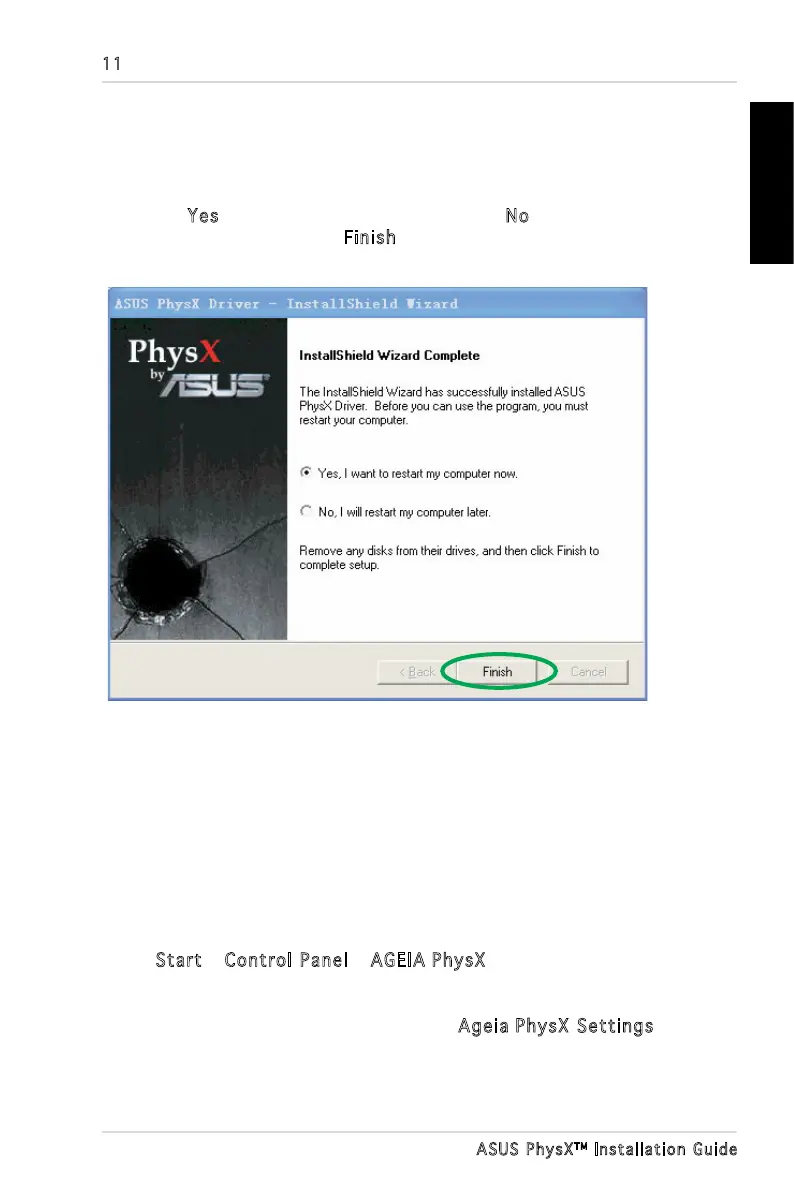 Note: If you have not installed the ASUS PhysX card yet, a window will