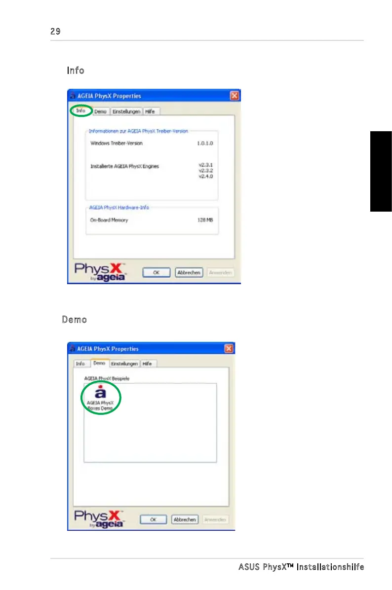 Das Info-Fenster zeigt die ASUS PhysX-Treiber- und Hardware-Informationen