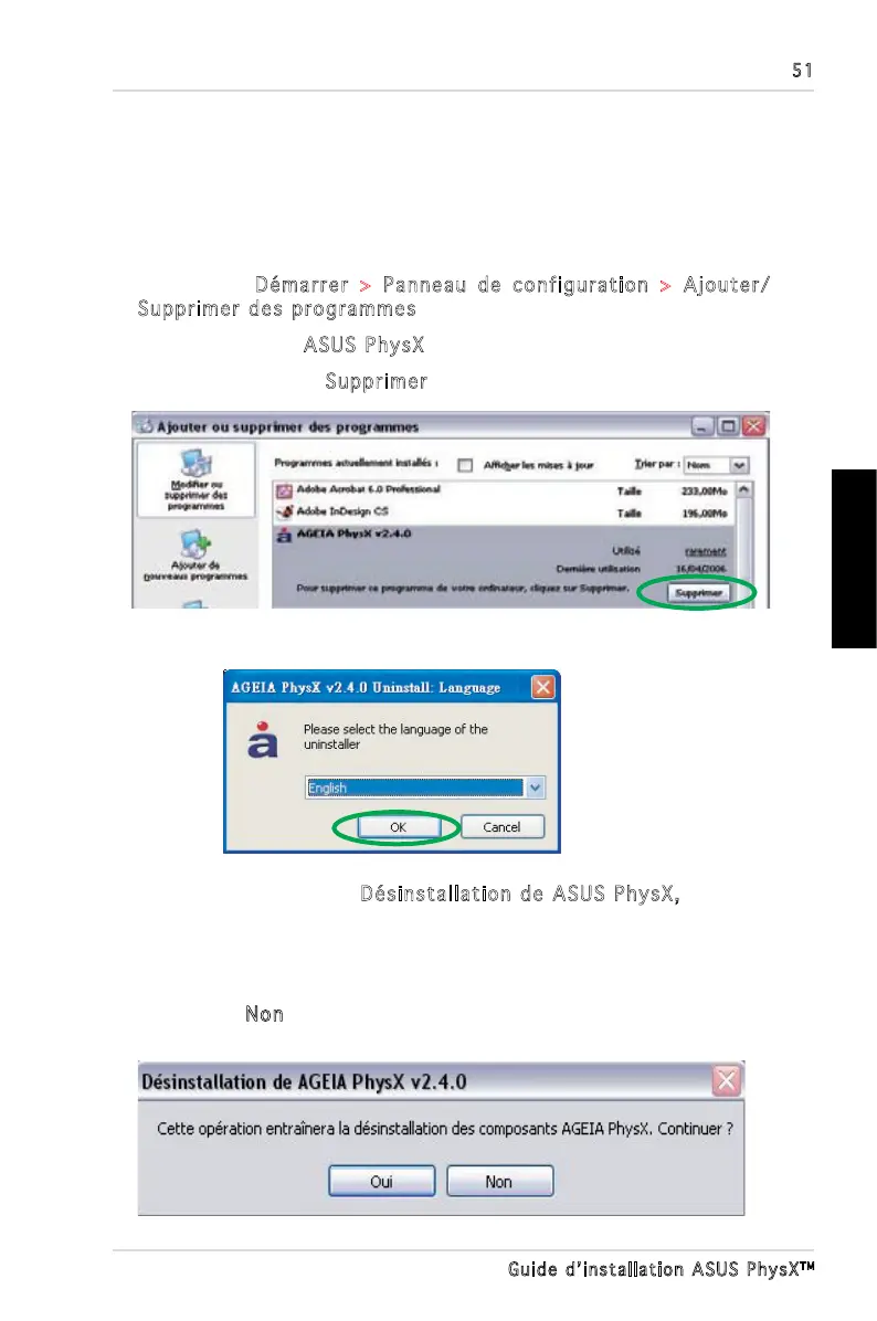 Pour désinstaller le pilote PhysX et les utilitaires :