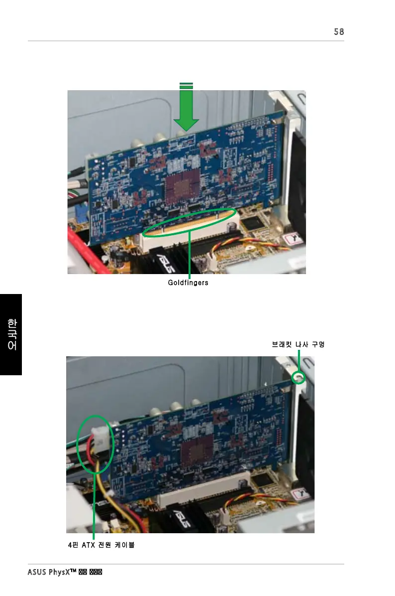 6. PCI 슬롯에 PhysX 카드를 완전히 장착될 때까지 눌러 주십시오. 금색핀 부분이