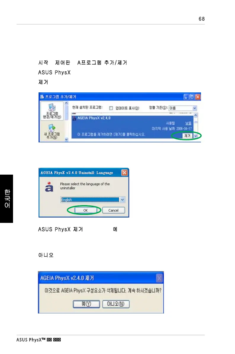 버튼을 클릭하면 ASUS PhysX 드라이버와 유틸리티가 제거되지 않습