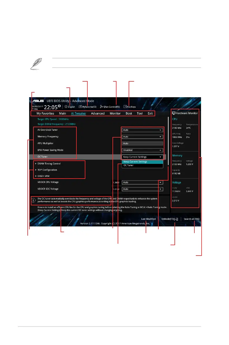 BIOSsettings.ThegurebelowshowsanexampleoftheAdvanced Mode.Refertothe