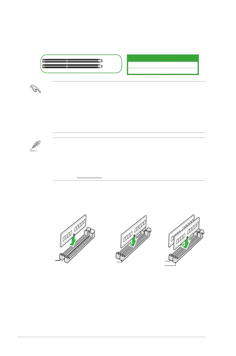 • Refer to www.asus.com for the latest Memory QVL (Qualied Vendors Lists).