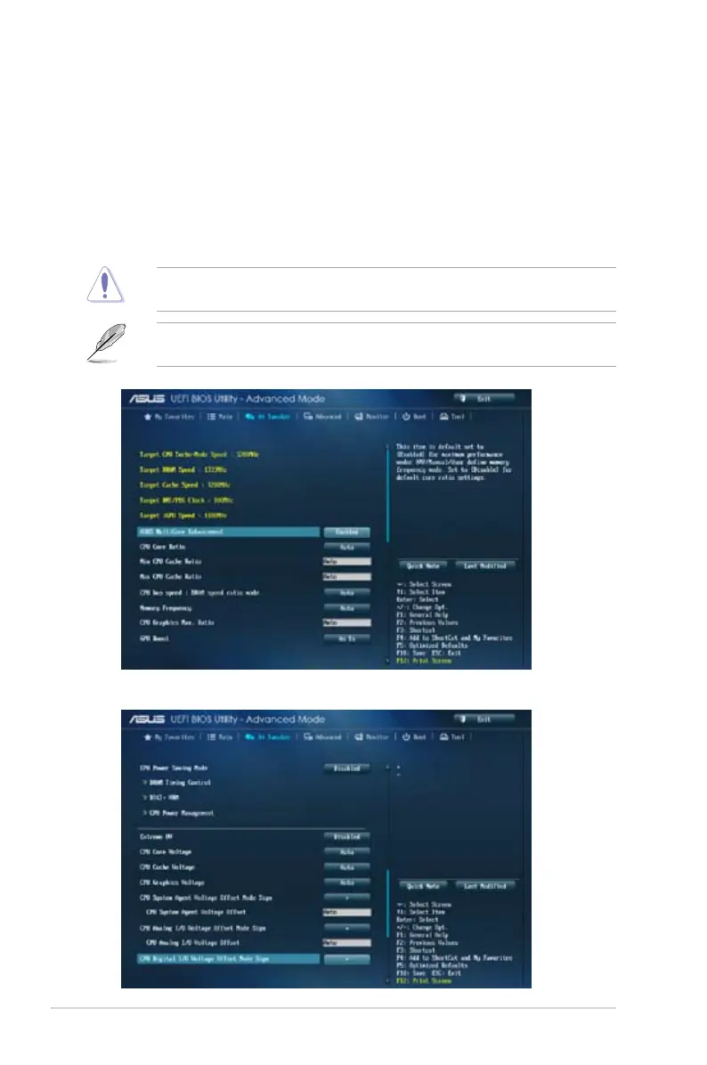 Be cautious when changing the settings of the Ai Tweaker menu items. Incorrect eld